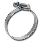 Abrazadera metálica 180-200. Ancho: 12 mm Calidad del material: W2: Fleje y jaula de acero inoxidable. X8Cr17 (DIN 1.4016) (AISI-430) y tornillo de acero cincado QST 34-3 (DIN 1.0213). Utilización: Las abrazaderas metálicas con ancho de fleje de 9 y 12 mm, así como las de acero inoxidable, son empleadas principalmente para los manguitos de agua del sistema de refrigeración del automóvil.